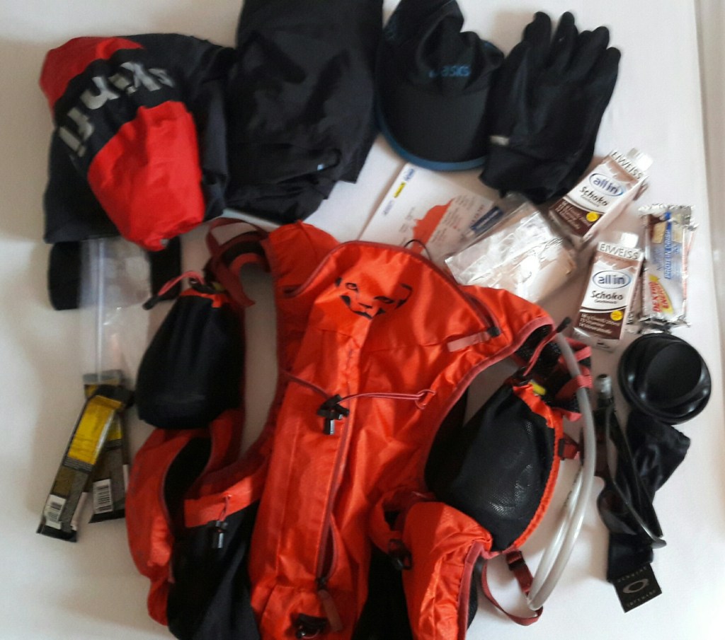 Mit der Pflichtausrstung inkl. der vollen Trinkblase und Nahrung blieb knapp unter drei Kilo.