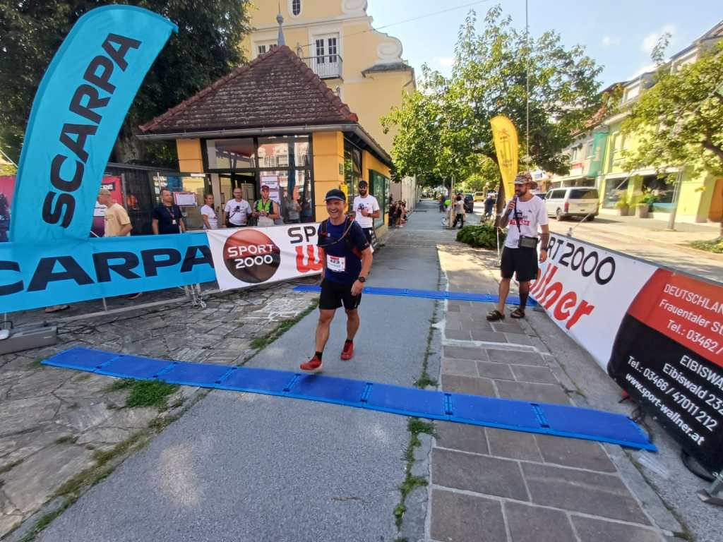 Nachdem sich der spätere Sieger Bernhard Ortner gleich absetze, bildete ich die rund ersten 15km mit drei anderen Läufern das Verfolgerfeld. Danach hat es auch unsere Gruppe zerbröselt und ich lief am zweiten und etwas später am dritten Platz. Aber bereits um km 20 kündigte sich ein Krampf in meiner linken Wade an – unüblich früh, zumal diese Distanz als erweiterte Hausrunde durchgehen würde. Ob die zwei letzten Tage vor dem Lauf (ich habe schlecht geschlafen und fühlte mich auch beim Aufstehen am Bewerbstag richt matt) damit zu tun hatten…?